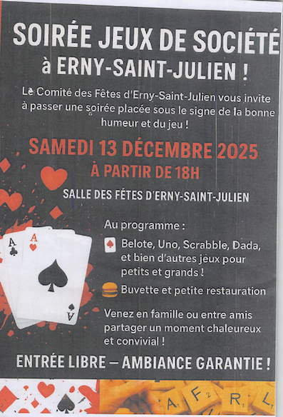 SOIREE JEUX DE SOCIETE 2025 - le 13/12/2025 de 18:00 à 23:00